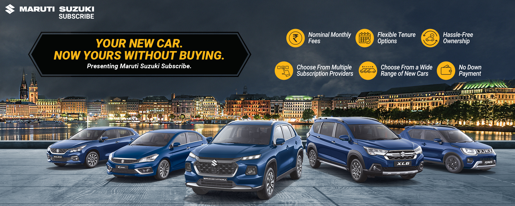Maruti Suzuki Subscribe enables all customers to enjoy driving their preferred Maruti Suzuki cars without having to deal with all the financial responsibilities that come with owning a car.All you need to do is opt for a monthly subscription plan at a fixed monthly fee, which includes the routine maintenance and insurance costs, and choose a flexible tenure. At Simran Motors in, , Kharghar, all Hatchback, Sedan, SUV, the MUV models line-up includes Baleno, Invicto, EVitara, Jimny, Ciaz, Ignis, Fronx, Grand Vitara, XL6. Here, you will enjoy Maruti Suzuki Subscribe benefits such as: